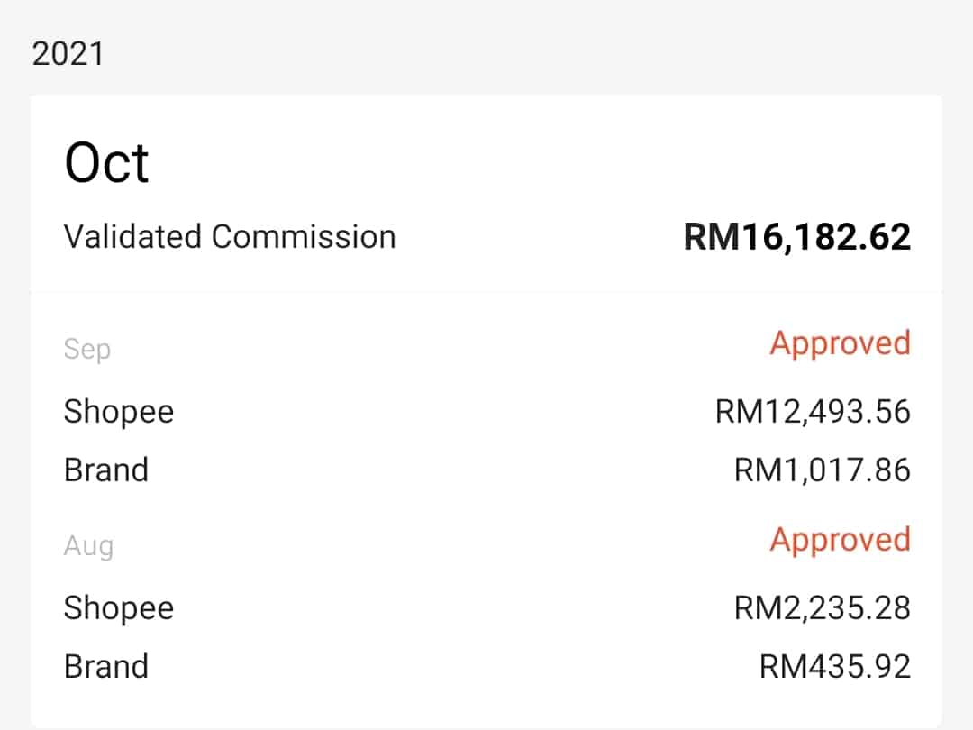 Ini adalah result komisen bulanan sejak join Affiliate Shopee.