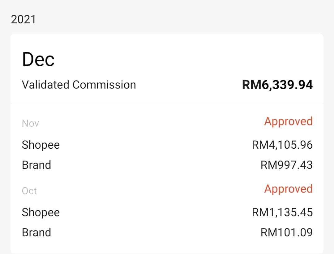 Ini adalah result komisen bulanan sejak join Affiliate Shopee.